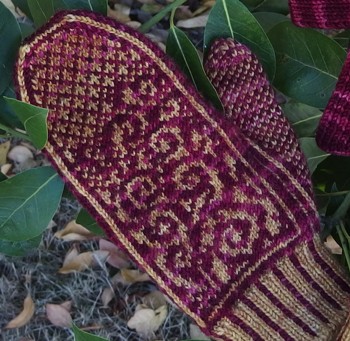 Great testimony to that yarn. Cute mittens, look complicated.