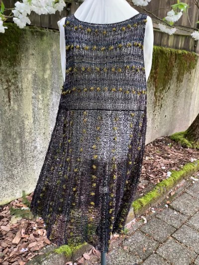 I am amazed at the inspiration of Setsuko Torii to combine these five unusual yarns into a fantastic fabric with an interesting feel and drape; then, incorporating that fabric into an elegant garment design. The resulting tunic is amazing.